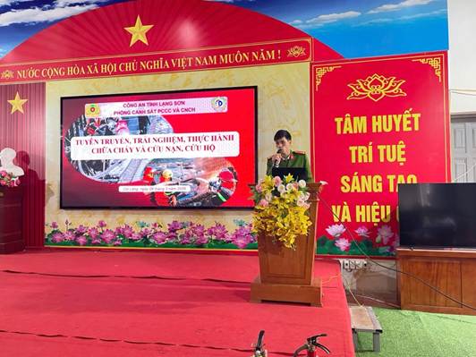 Hình 1.Lực lượng Cảnh sát PCCC và CNCH giới thiệu các kiến thức về PCCC và CNCH