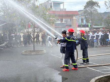 Hình 3. Học sinh tham gia thực hành sử dụng lăng, vòi chữa cháy
