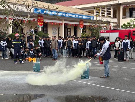 Hình 4. Học sinh tham gia thực hành sử dụng bình chữa cháy