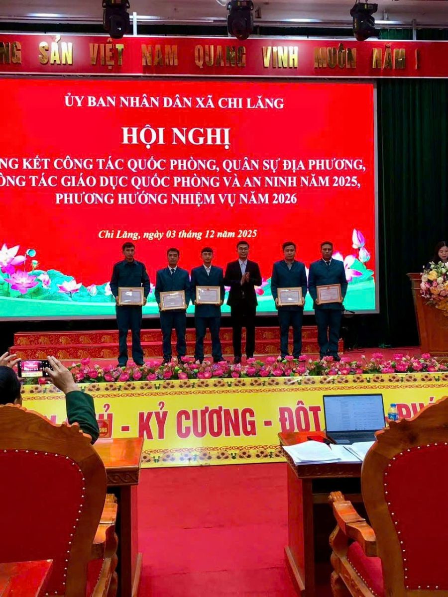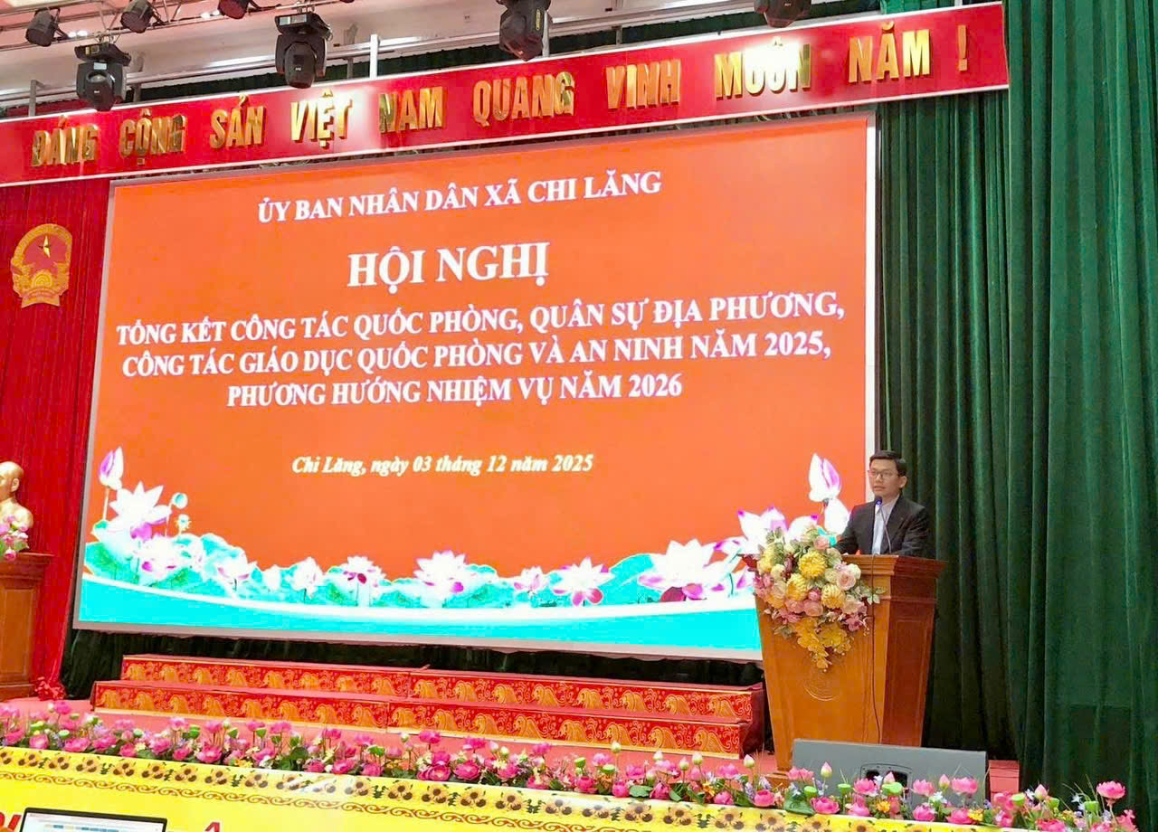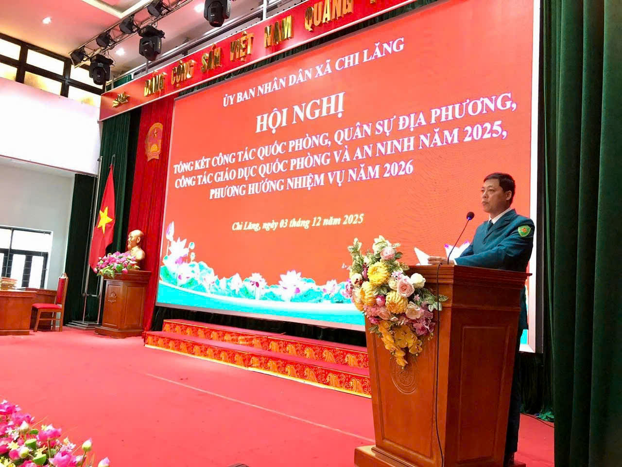 Ngày 03/12/2025, UBND xã Chi Lăng tổ chức Hội nghị tổng kết công tác quân sự, quốc phòng địa phương, công tác giáo dục quốc phòng và an ninh năm 2025, phương hướng nhiệm vụ năm 2026.