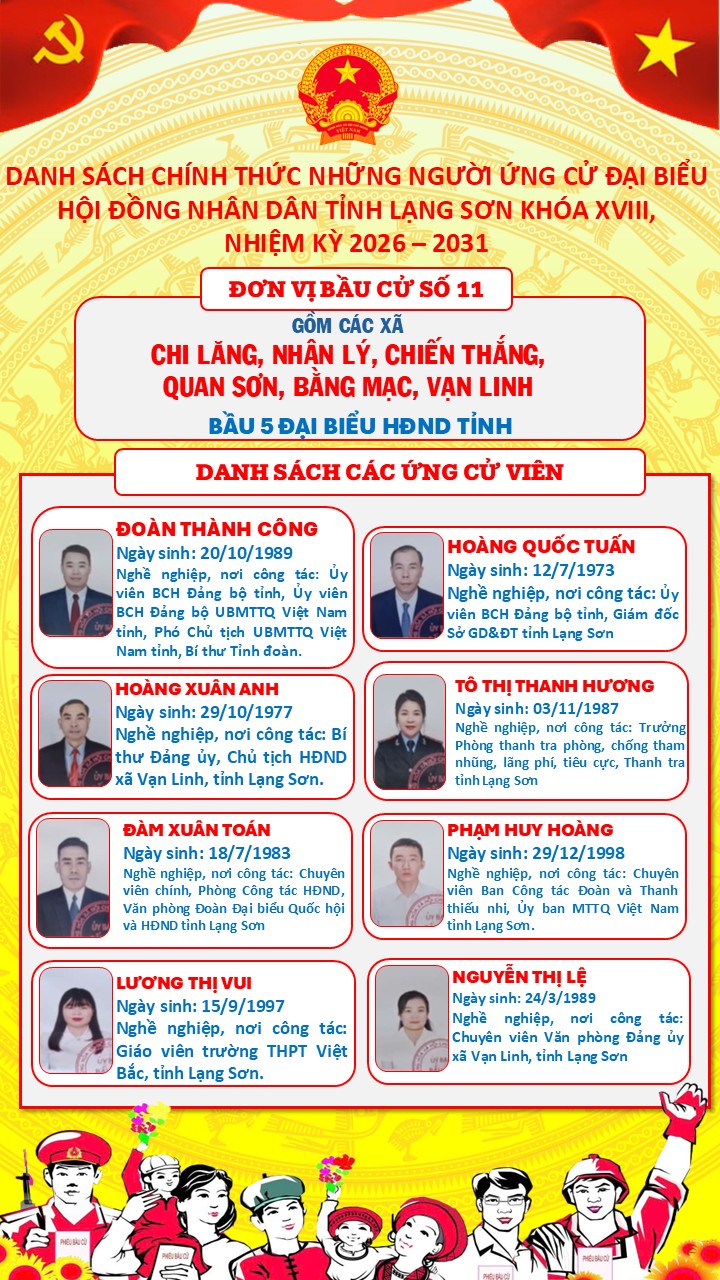 Danh sách chính thức các ứng cử viên Đại biểu HĐND tỉnh Lạng Sơn khóa XVIII, nhiệm kỳ 2026 - 2031