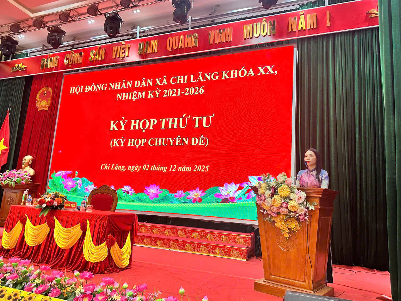 Chiều ngày 02/12/2025, Hội đồng nhân dân xã Chi Lăng khóa XX, nhiệm kỳ 2021-2026 đã tổ chức Kỳ họp thứ Tư (kỳ họp chuyên đề) tại Hội trường UBND xã. Tham dự và chỉ đạo kỳ họp có Đồng chí Dương Thị Huyền Phương - Tỉnh ủy viên, Bí thư Đảng ủy xã Chi Lăng.