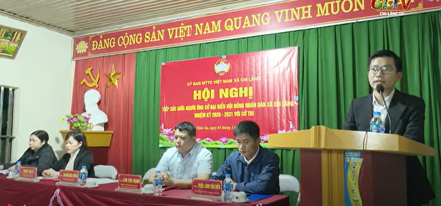 Tối ngày 05/3/2026, Ủy ban MTTQ Việt Nam xã Chi Lăng đã tổ chức các hội nghị tiếp xúc giữa người ứng cử đại biểu HĐND các cấp tại đơn vị bầu cử số 5, số 6 với cử tri để vận động bầu cử tại thôn Ga và thôn Quán Thanh.