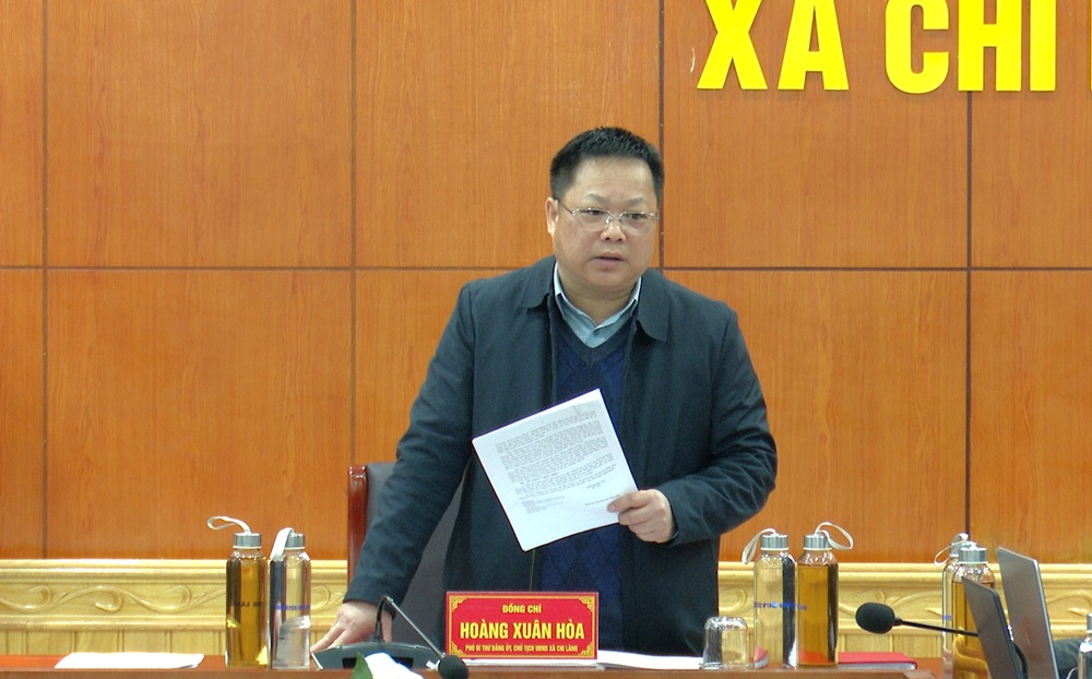 Đồng chí Hoàng Xuân Hòa - Phó Bí thư Đảng ủy, Chủ tịch UBND xã kết luận hội nghị.