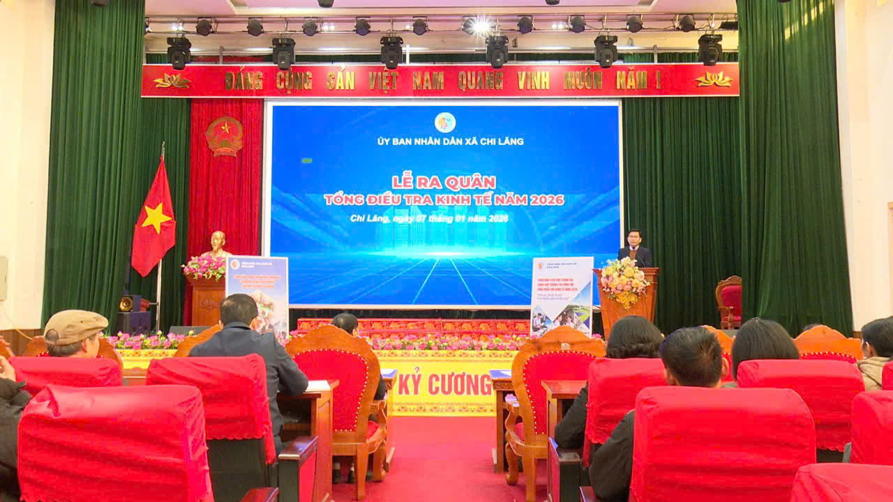 Sáng ngày 07/01/2026, UBND xã Chi Lăng long trọng tổ chức Lễ ra quân Tổng điều tra kinh tế năm 2026, hòa cùng khí thế triển khai đồng loạt tại các địa phương trên địa bàn tỉnh Lạng Sơn. Đây là sự kiện có ý nghĩa quan trọng, đánh dấu thời điểm chính thức bắt đầu cuộc Tổng điều tra thống kê quy mô lớn, phạm vi toàn quốc, phục vụ công tác quản lý, điều hành và hoạch định chính sách phát triển kinh tế – xã hội trong giai đoạn mới.