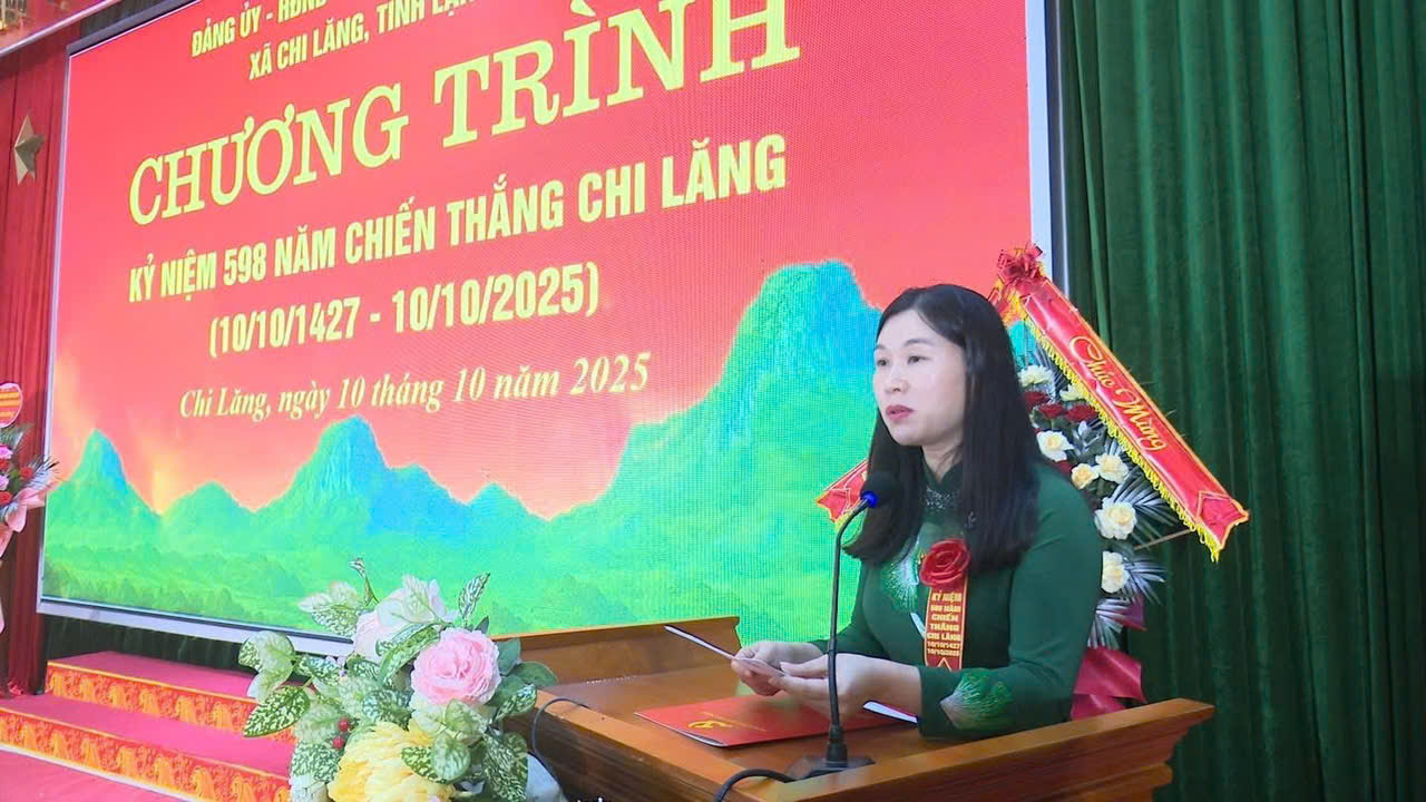 Sáng ngày 10/10/2025, Đảng ủy, HĐND, UBND, UBMTTQ Việt Nam xã xã Chi Lăng long trọng tổ chức chương trình kỷ niệm 598 năm chiến thắng Chi Lăng (10/10/1427 – 10/10/2025). Dự chương trình có đồng chí Hoàng Thanh Hải, Vụ trưởng Vụ Tuyền truyền, Ban Tuyên giáo và Dân vận Trung ương; Lãnh đạo một số Sở ngành của tỉnh; Các đồng chí nguyên là lãnh đạo tỉnh, huyện qua các thời kỳ; Lãnh đạo một số cơ quan đơn vị, các xã trên địa bàn tỉnh; Lãnh đạo Đảng ủy, HĐND, UBND, UBMTTQ Việt Nam xã Chi Lăng.