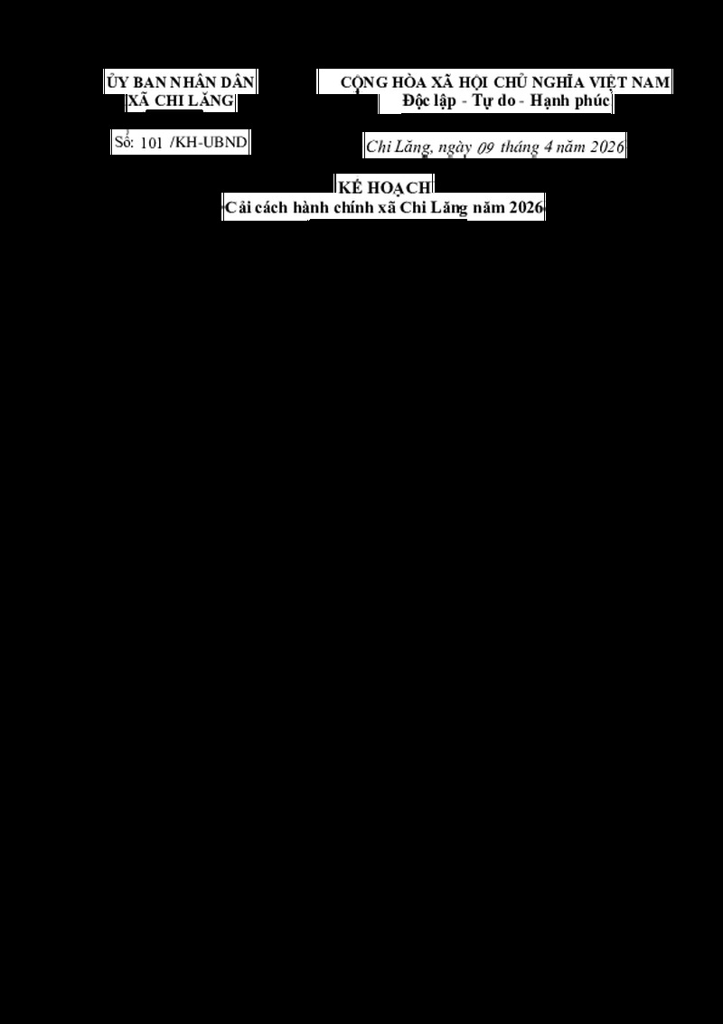 | Tiêu đề văn bản | KẾ HOẠCH Cải cách hành chính xã Chi Lăng năm 2026 | ||