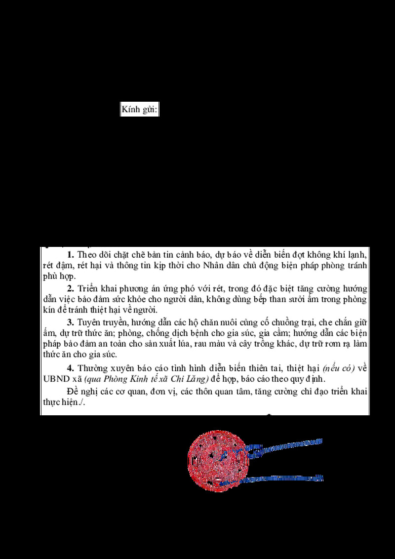 | Tiêu đề văn bản | V/v chủ động ứng phó với rét đậm, rét hại trên địa bàn | ||