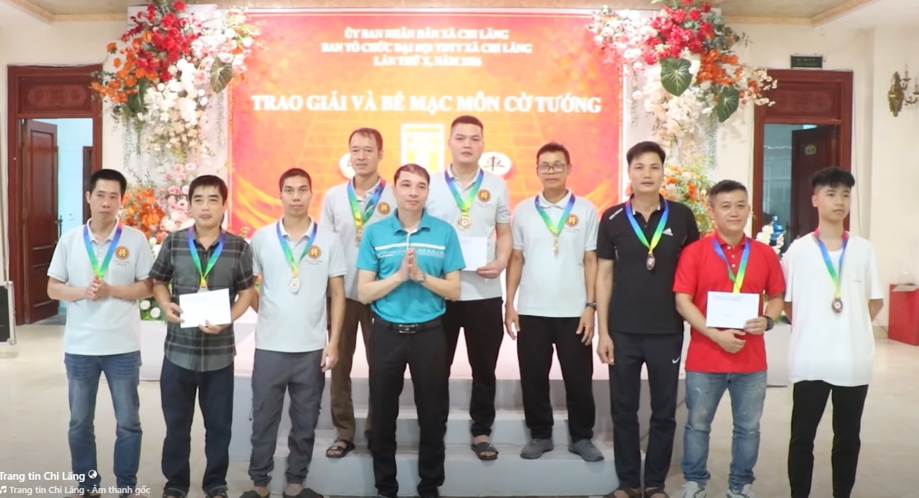 Chiều ngày 04/4/2026, môn Cờ tướng trong khuôn khổ Đại hội Thể dục Thể thao xã Chi Lăng lần thứ X đã chính thức bế mạc sau một ngày thi đấu sôi nổi, nghiêm túc và đầy kịch tính. Trên tinh thần thi đấu trung thực, đoàn kết, các kỳ thủ đã cống hiến nhiều ván cờ hay, thể hiện trình độ chuyên môn và bản lĩnh thi đấu vững vàng.