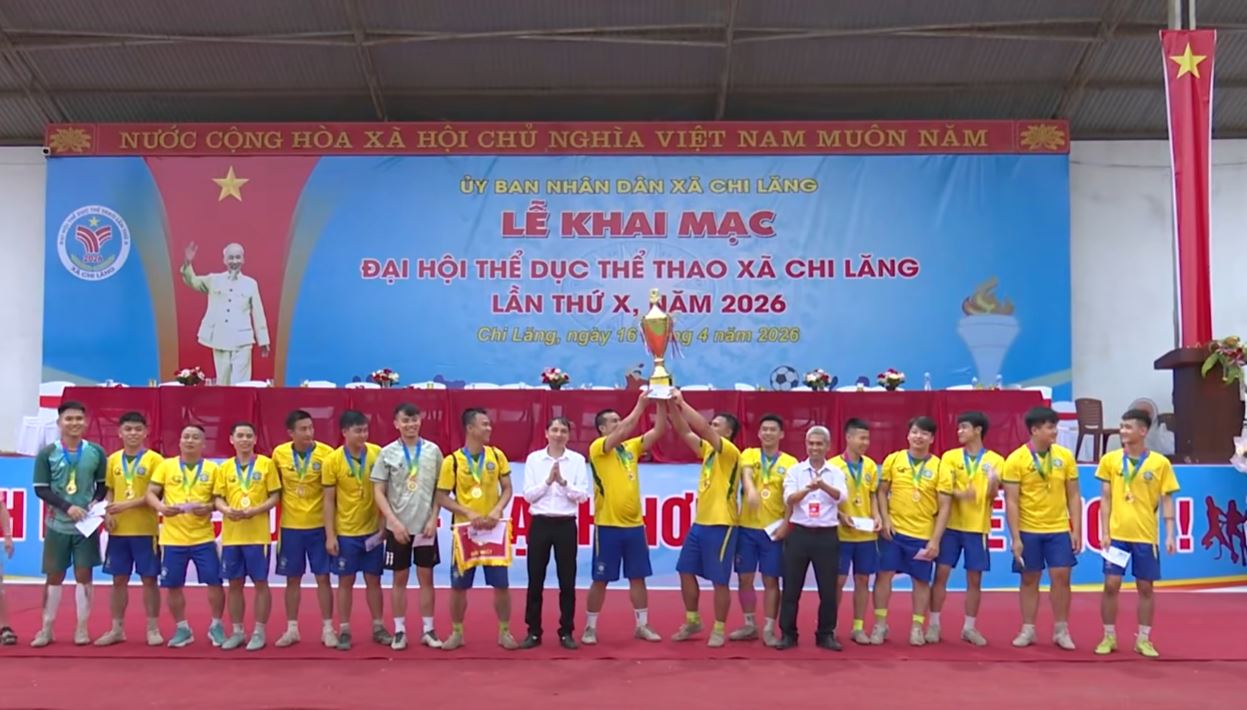 Khởi tranh từ ngày 22/3, sau 6 vòng đấu với gần 30 trận đấu, chiều ngày 16/4, đã diễn ra trận chung kết môn bóng đá nam 7 người trong khuôn khổ đại hội thể dục thể thao xã Chi Lăng lần thứ X, năm 2026 với chức vô địch thuộc về đội Công ty Tuân Thảo.