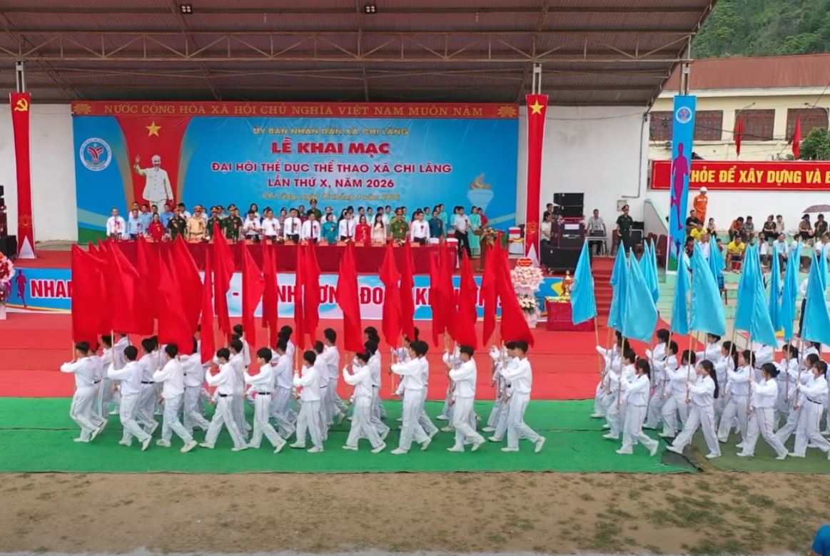 Chiều ngày 16/4/2026, tại sân vận động trung tâm, UBND xã Chi Lăng đã long trọng tổ chức Lễ khai mạc Đại hội Thể dục thể thao lần thứ X năm 2026 trong không khí sôi nổi, phấn khởi, thu hút đông đảo Nhân dân và các lực lượng tham gia. Dự buổi lễ có đồng chí Dương Minh Tuệ, Phó Giám đốc Sở Văn hóa, Thể thao và Du lịch tỉnh. Đồng chí Nguyễn Đức Cường, Phó Bí thư Thường trực Đảng ủy. Đồng chí Hoàng Xuân Hòa, Phó Bí thư Đảng ủy, Chủ tịch UBND xã. Và các đồng chí lãnh đạo xã cùng hàng nghìn vận động viên, cán bộ, chiến sĩ Trung đoàn 141, Sư đoàn 3 và các em học sinh trên địa bàn.