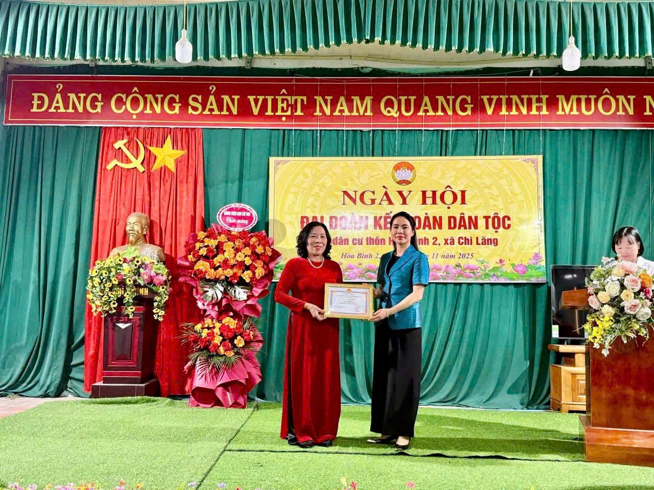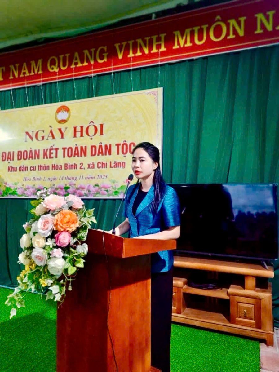Chiều ngày 15/11/2025, Đoàn công tác của Đảng ủy xã Chi Lăng do đồng chí Dương Thị Huyền Phương, tỉnh ủy viên - Bí thư Đảng ủy xã Chi Lăng làm Trưởng đoàn dự Ngày hội Đại đoàn kết toàn dân tộc tại thôn Hòa Bình 2.