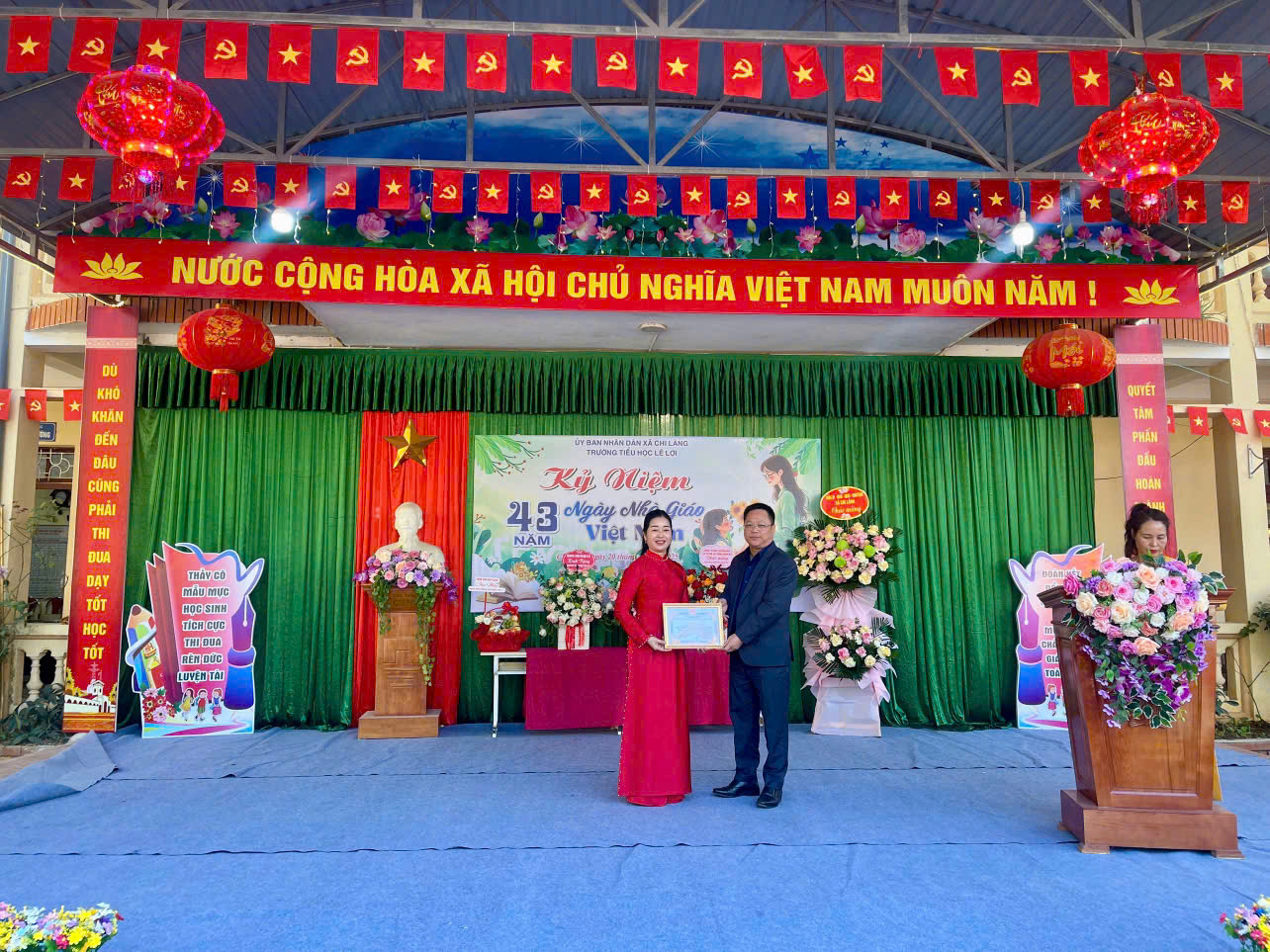 Ngày 20/11/2025, ông Hoàng Xuân Hòa - Phó Bí thư Thường trực Đảng ủy, Chủ tịch HĐND xã Chi Lăng đã đến dự và chúc mừng Lễ kỷ niệm Ngày Nhà giáo Việt Nam 20/11 tại Trường Tiểu học Lê Lợi.
