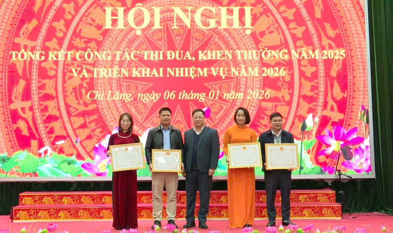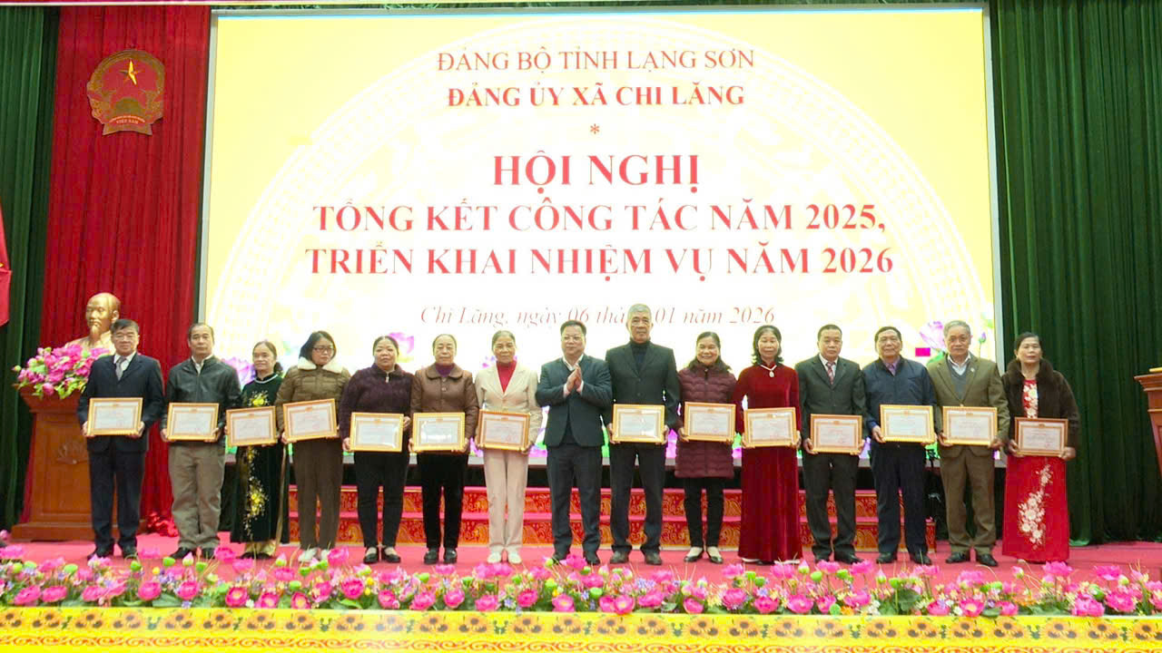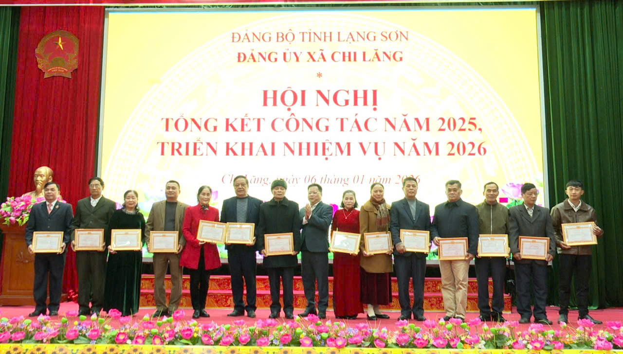 Cũng trong chiều ngày 06/01, tại hội nghị tổng kết công tác Đảng năm 2025, triển khai phương hướng, nhiệm vụ năm 2026, Ban Thường vụ Đảng ủy xã Chi Lăng đã tặng giấy khen cho 13 tập thể tổ chức Đảng trực thuộc đạt tiêu chuẩn Hoàn thành xuất sắc nhiệm vụ năm 2025. Tặng giấy khen cho 75 Đảng viên thuộc các Chi bộ thôn được đánh giá đạt tiêu chuẩn Hoàn thành xuất sắc nhiệm vụ năm 2025.